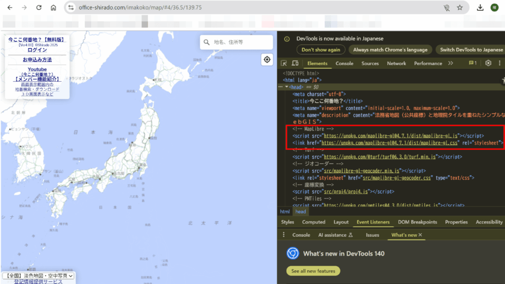 MapLibre GL JSを使用する上で必要なデータをこの記述で読み込みます。